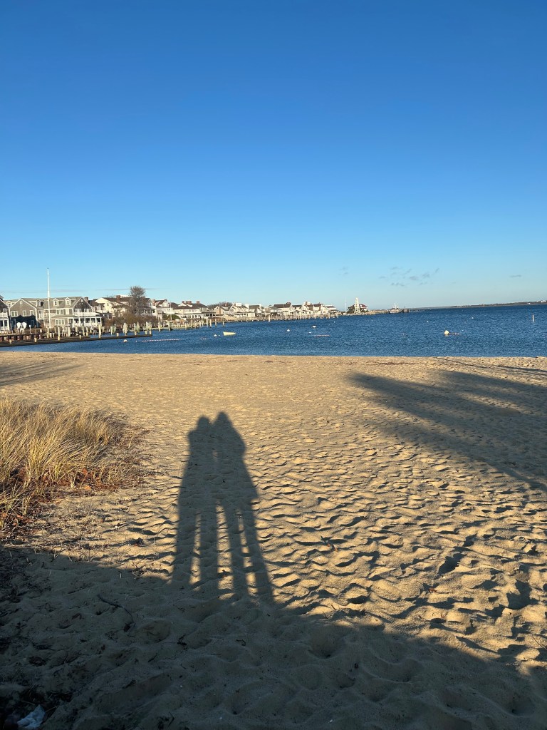 On the bookcase in my writing room, there is a small shrine that gives me so much pleasure to look at. There is a print of water glimmering on the shore as evening approaches the coast of Monhegan Island. It is a beautiful artist’s capture of inky blues and golden waning light, but it is also a reminder of the adventure that I was lucky enough to share with my beloved sister who has since passed. When I see that picture, I think of the walks we shared on the rocky coast and the glasses of wine sipped on the inn’s porch looking at the clouds float by.