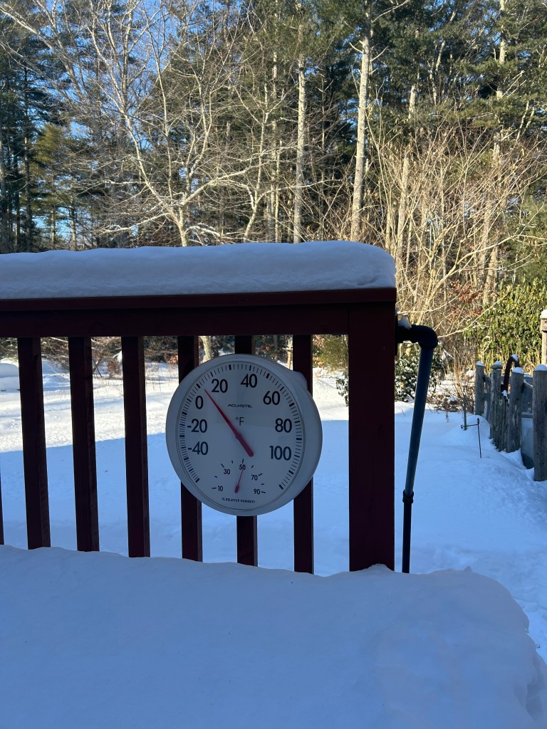 Yes, the snow is heavy and deep. That is true, but snow cover in January is normal. It is what nature intended in order to keep plant life safe beneath the heavy cover of insulation. I am wondering if the rosemary safely buried by the front door will survive this latest arctic blast. I have never been lucky about overwintering it, but this might be the year. Yes, there are many reasons to be thankful for the snow. It makes everything look so much prettier especially the day after a storm when the sun comes out and dazzles everything as if with a magic wand. There is nothing like the sight of a red cardinal perched on a white blanketed pine branch. It flits to the birdfeeder for some seed. Soon, it is joined by a blue jay and then so many other species. They seem to get along in their shared mission, proving that anything is possible.