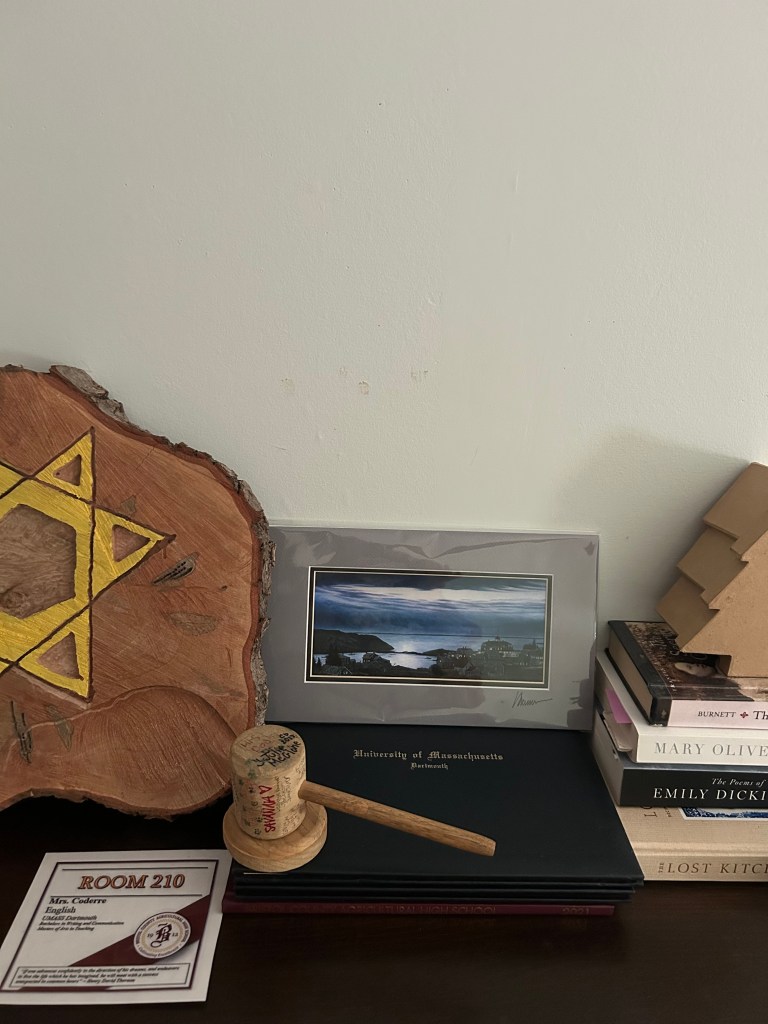 Nearby, there is a gavel, handmade by some student whose name has been sadly forgotten. That wooden gavel became engraved with so many names over the years by students reenacting the trial scene of Tom Robinson in To Kill a Mockingbird. I can picture Spenser with his feet up on the desk, bubble gum cigar in mouth, pounding the judge’s gavel when the courtroom got too noisy.